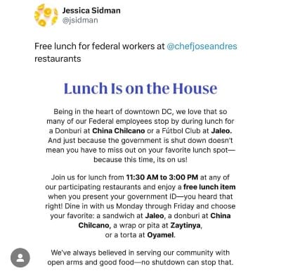 As the government shutdown continues, I want to share some resources for anyone who has been impacted:
