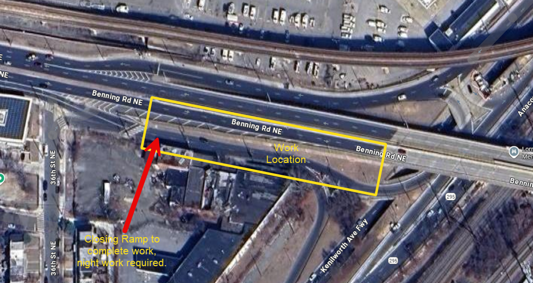 • The DC 295 ramp from Benning Road will need to be entirely closed so Washington Gas can move a gas line.