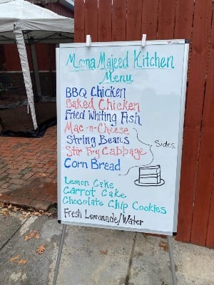 After I participated in the neighborhood cleanup on Saturday, the smell of food called to me from Clay Place and 34th Street, and I found this sign for Mama Majeed Kitchen. They're planning to be open for at least one more month on the last Saturday of October from 7 AM to 6 PM. Don't miss the cabbage stir fry - it was incredible!